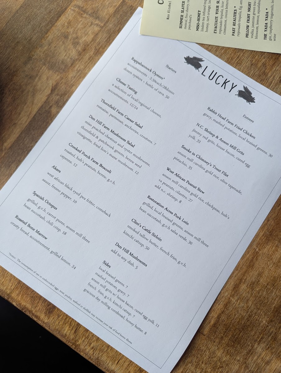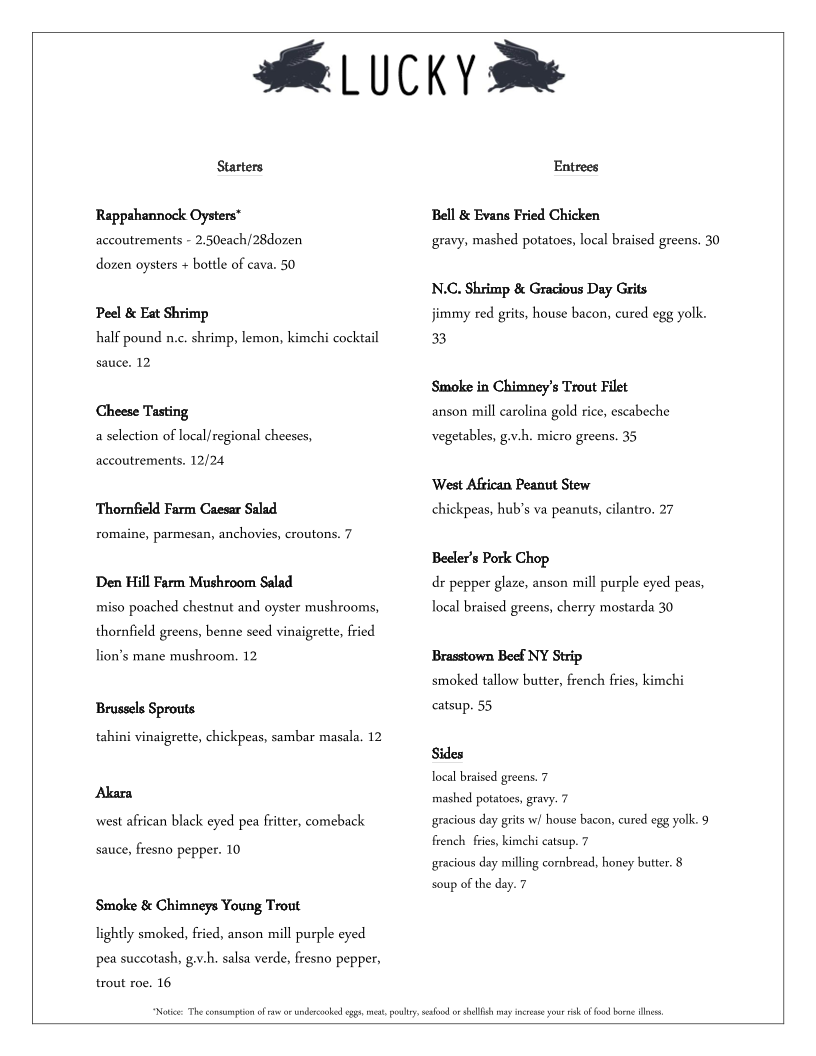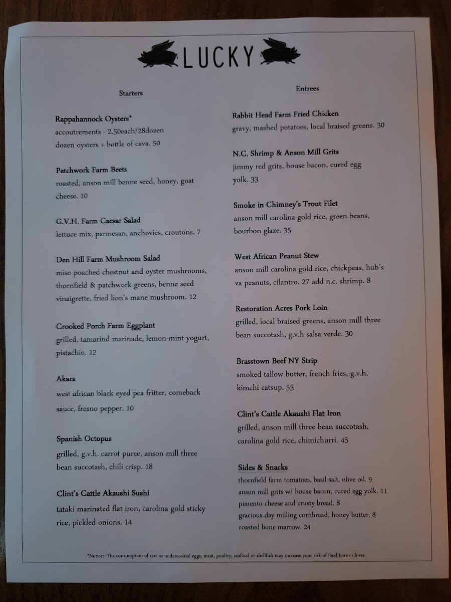 (Each) chicory purée, "red eye" gravy, cured egg yolk, biscuit