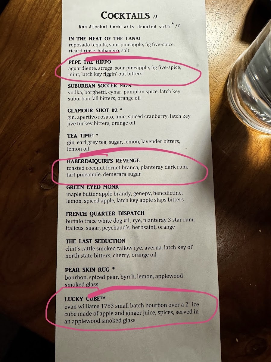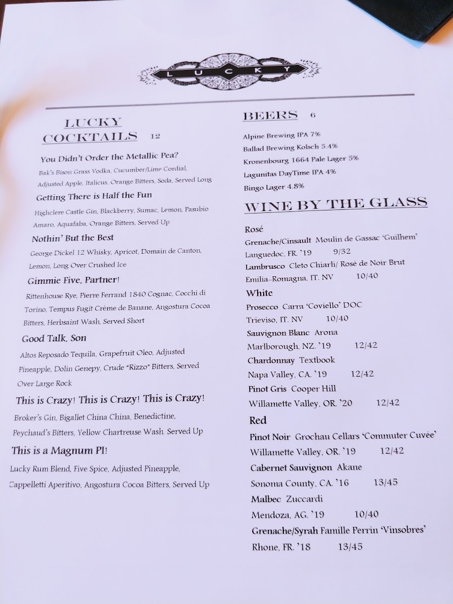 Lucky rum blend, five spice, adjusted pineapple, cappelletti aperitivo, angostura cocoa bitters, served up